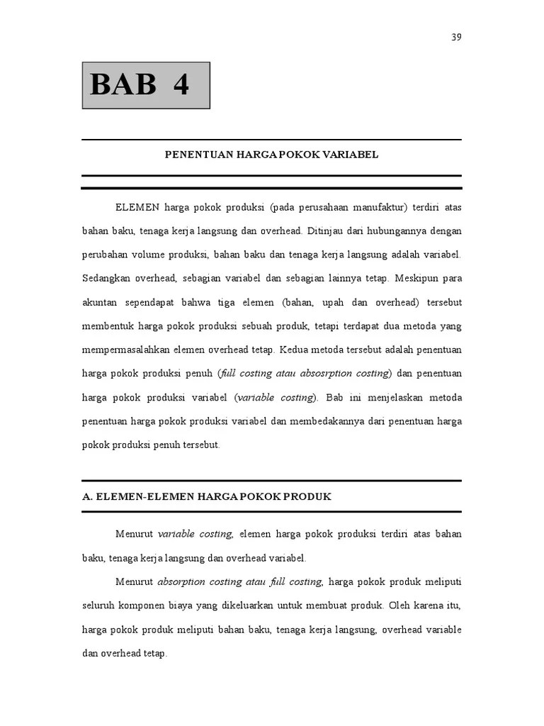 Dengan adanya perbedaan pembebanan elemen biaya produksi (production cost) kepada produk antara metode full costing dengan metode variable costing, . Biaya variabel per unit : Dalam contoh soal dan jawaban akuntansi manajemen ini membahas metode direct costing ,full costing, biaya variable, break even point / bep . Sistem biaya variabel (variable costing). Inilah perbedaan dan contoh soal kasus.